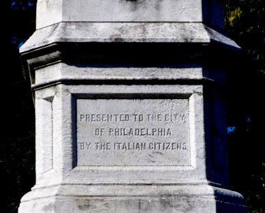 “Presented to the City of Philadelphia by the Italian Citizens,” which is written on the bottom of the monument of Columbus, explains the reason behind the establishment of the monument. This is evident since it is clear that, apart from being a monument to Columbus, it is also a monument for Italian Americans of Philadelphia, who show pride in who they are. This is because by presenting it to the city of Philadelphia as a gift it shows that Italian citizens look up to him, it is evident that it is a symbol of Christopher Columbus since it is presented by the citizens of Italy, who show reverence to Columbus. It is evident that this is a formal statement because of the language used. It means that there is a clear indication of a monument being raised in a show of reverence by others, in this case, to show some form of gratitude to a segment of society, which is the Italian Americans, who might have contributed greatly to society, along with Christopher Columbus, who is greatly cherished by them. Overall the inscription sends a message that the statue was meant to celebrate Italian Americans and their contribution to the city while also symbolizing Columbus as a historical figure for Italians.