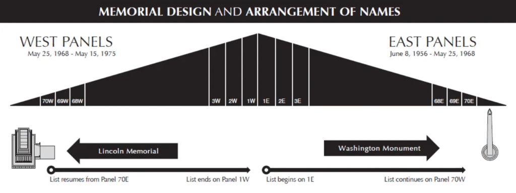 - https://www.vvmf.org/About-The-Wall/#:~:text=Each%20wall%20of%20the%20Vietnam,is%20superimposed%20over%20the%20cross.